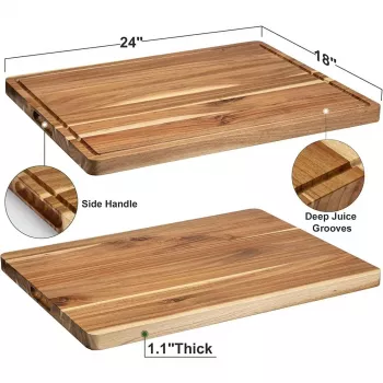 Acacia Wood Cutting Board with Handles, Juice Groove & Thick Butcher Block