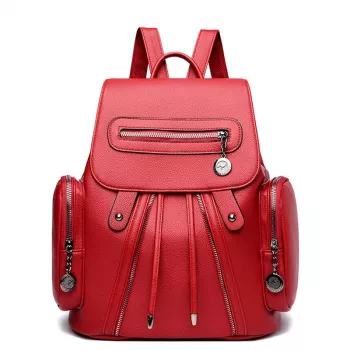 Women’s PU Leather Multi-Pocket Fashion Backpack for School & Travel